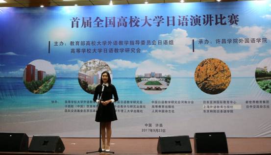 经过初赛选拔,来自全国36所高校的选手参加了此次比赛。比赛分为命题演讲和即兴演讲两部分。命题演讲题目为“我眼中的日本(日本人)”“我和日语”任选其一,即兴演讲题目为“我最喜欢的季节”。选手们在比赛过程中发音地道、台风稳健、声情并茂、风格独特,或激情澎湃,或娓娓道来,或风趣幽默,会场多次响起热烈掌声。本次大赛设立特等奖1名、一等奖5名,二等奖14名,三等奖16名。经过激烈角逐,最终来自大连理工大学的李俏同学获得特等奖。来自南京大学、苏州科技大学、中国农业大学、济南大学、湖南科技学院的5名同学获得一等奖。许昌学院的赵梦鹤同学表现大方自信,表现力、渲染力极强,以第十名的好成绩获得二等奖!