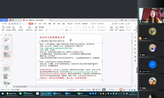 4月15日下午,我院成功举行了本年度的日语考研交流会。受疫情影响,本次交流会以腾讯会议视频在线形式进行。交流会邀请了2022年考上国内研究生的8名学生,日语全体在校师生参加了此次交流活动。