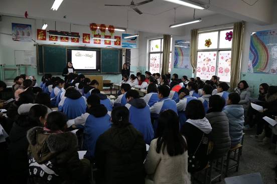 上午九时,研修活动准时开始。首先郭歆老师采用“学习共同体”的方式上了一节90分钟的英语示范课,授课对象为许昌市一中九年级30余名学生,学院研究基地10余名教师及六所基地实验学校的20余名教师作为“观察员”观摩了示范课。上课前,郭老师首先调整了班级的座位摆放,由传统的“秧田式”调整为利于师生、生生互动的“U型式”;陈博士为教师们讲解了课堂观察的原则及需要观察的内容。接下来,郭老师以小说“The Gift of Magi”中的片段作为教学内容展开了一节阅读课的教学。在教学过程中,每位观察员都对自己的观察对象进行了细致入微的观察。郭老师的课程结束后,30余名观察员在陈博士的带领下,对课堂观察进行了分享和研讨。