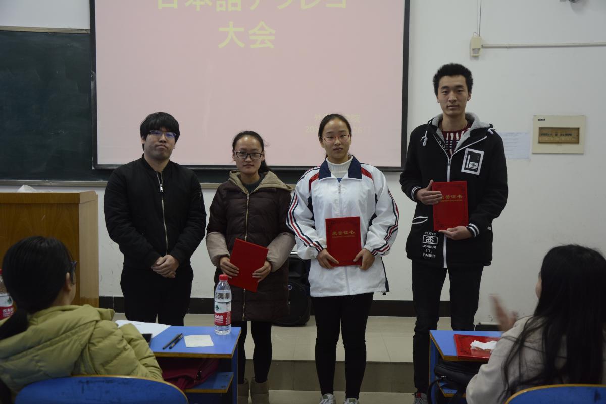本次大赛在《奇异太郎少年的妖怪绘日记》的配音中拉开了帷幕。比赛中,参赛者们情感丰富,发音标准,表现十分出色,现场不时掌声雷动。根据参赛者们的配音流畅度,发音准确度,以及对角色的情感表达。最终,《蜡笔小新》的配音获得一等奖,《千与千寻》等三组配音获得二等奖,《奇异太郎少年的妖怪绘日记》等四组配音获得三等奖。然后由外教泽村贵志和保坂多巳良老师总结发言,两位老师肯定了本次活动的意义,指出配音过程中反复练习会使听力和口语都得到全方面的提高,希望本次活动能够提高同学们的日语表达能力,并鼓励学生今后要更加努力学习,学好日语。