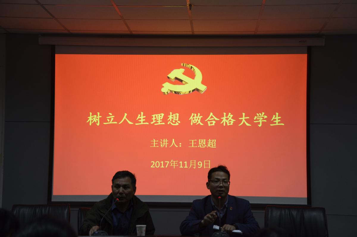 11月9日,外国语学院党建组织员王恩超老师以“树立人生理想,做合格大学生”为题,对参加我院17181期分党课的入党积极分子开展培训。
