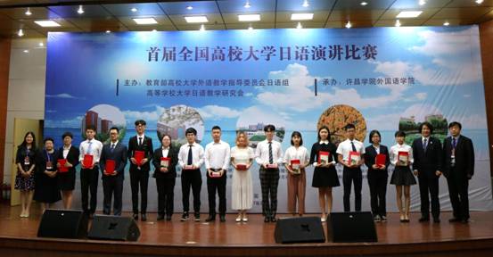 经过初赛选拔,来自全国36所高校的选手参加了此次比赛。比赛分为命题演讲和即兴演讲两部分。命题演讲题目为“我眼中的日本(日本人)”“我和日语”任选其一,即兴演讲题目为“我最喜欢的季节”。选手们在比赛过程中发音地道、台风稳健、声情并茂、风格独特,或激情澎湃,或娓娓道来,或风趣幽默,会场多次响起热烈掌声。本次大赛设立特等奖1名、一等奖5名,二等奖14名,三等奖16名。经过激烈角逐,最终来自大连理工大学的李俏同学获得特等奖。来自南京大学、苏州科技大学、中国农业大学、济南大学、湖南科技学院的5名同学获得一等奖。许昌学院的赵梦鹤同学表现大方自信,表现力、渲染力极强,以第十名的好成绩获得二等奖!