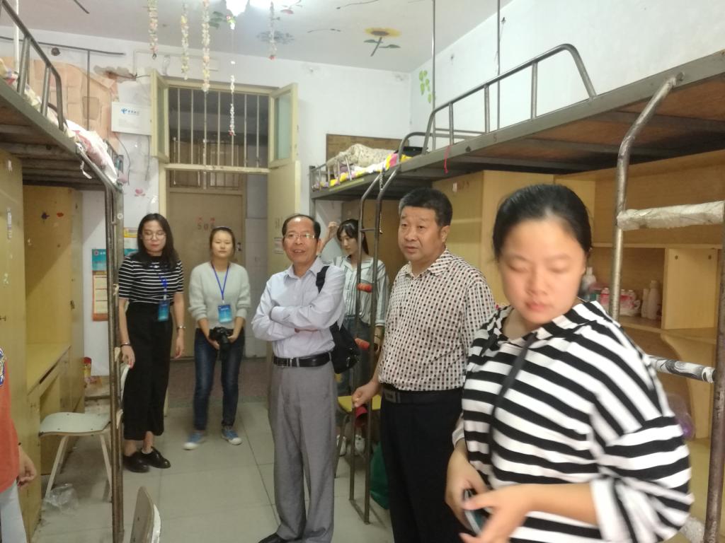 9月10日下午,我院党总支书记王国志、副书记盛双合、副院长曾尔奇深入学生宿舍,了解同学们在新宿舍看望慰问17级新生,了解他们学习生活情况。