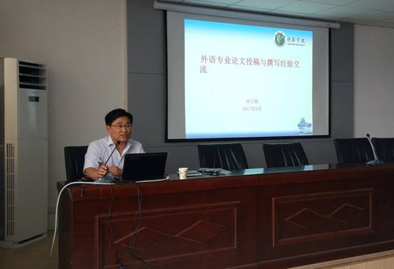 6月2日下午,结合外国语学院教师科研现状及外语专业论文发表难的情况,我院刘立胜博士为全院教师做了题为“外语专业论文投稿与撰写经验交流”的讲座。