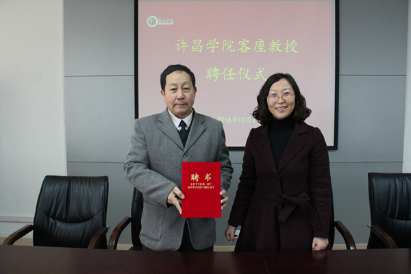 应科技处、外国语学院邀请,10月31日下午,河南大学博士生导师王铁桥客座教授聘任仪式暨学术讲座在我校E-1917教学楼举行。我院的师生以及我校其它专业师生也参加了此次活动。仪式由外国语学院副院长曾尔奇主持。 外国语学院院长刘彩霞教授向王铁桥教授颁发了客座教授聘书。