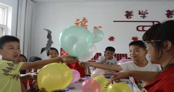 仪式结束后,志愿者与孩子们一起玩游戏,吹气球,玩魔方,写中秋寄语等等,气氛热烈、其乐融融,小小的毓秀社区办事处,充满了家和团圆的味道,大家一起共度中秋佳节。经过长期的志愿服务活动,孩子们早已经把志愿者当作了自己的好朋友,有东西大家一起分享、有苦难大家共同承担。