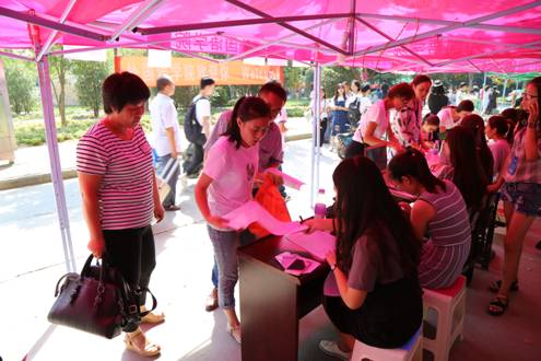迎新工作如火如荼,秩序井然,到处人头攒、身影忙碌。迎新志愿者统一佩戴胸卡,按要求安排在校门口,校内主干路接待点上。新生和家长一下车,迎接他们的是志愿者灿烂的微笑和真诚的话语:“你好”,“欢迎来到学校”,并“抢”下新生和家长手中沉重的行李。接待点的同学们不厌其烦地回答新生、家长提出的各种问题,热情介绍学院的基本情况。
