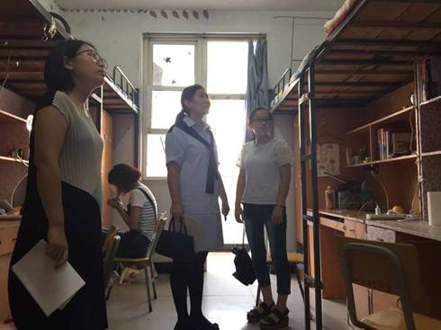 2016年9月4日下午,我院党总支副书记盛双合、辅导员陈化宇、李莹、李佳琪走访我院学生宿舍,指导我院宿舍搬迁工作,现场解决搬迁过程中遇到的难题,对搬迁后的宿舍进行检查验收,深入了解同学们在新宿舍的学习生活情况。