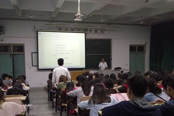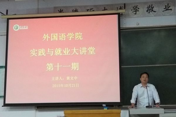 ,外语教育专家、河南旅游专家、营销理论专家兼实战高手、《东方营销学》创始人黄文中教授在B合十九教室以就业实习为主题,为广大师生开展了一场精彩又不乏幽默感的讲座。报告由外国语学院许涛书记主持,许书记首先针对我院毕业生就业情况进行总结,并明确指出当前大学生的就业方向,使同学们对就业之路有了更加清晰的认识。