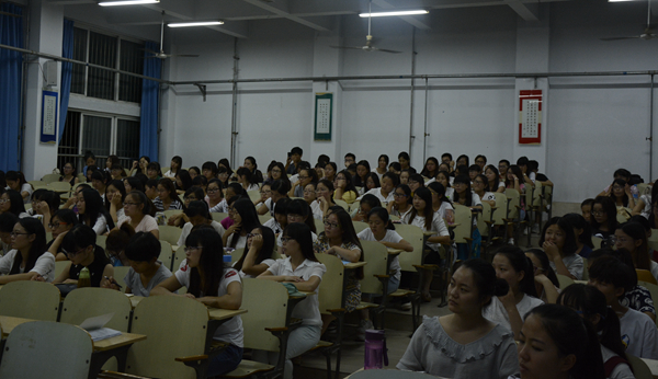 晚7-9点,我院在B合四多媒体教室举行了2013级英语专业考研座谈会。我院英语专业教师刘立胜、马文慧(口笔译方向)、温军超(语言学方向)、卢书娟(教学法方向)、樊晓云(商务方向)、何小颖(英美文学方向)与2013级准备考研的200余名同学参加了此次交流会。