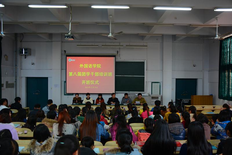 为了进一步加强我院学生干部队伍建设,增强我院学生干部的责任意识和服务意识,提高学生干部的综合素质,更好的发挥学生干部桥梁纽带作用。11月19日,我院第八届团学干部培训班开班仪式在B合五教室举行。出席开班典礼的有外国语学院党总支书记许涛、副书记胡凯娟,各年级辅导员。团总支学生会全体成员与14级班干部参加了本次仪式。仪式由团总支书记李想老师主持。