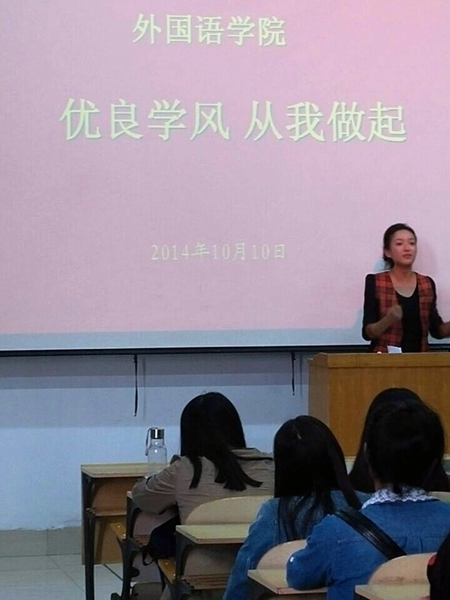 优良学风的建设不仅需要老师的正确引导,更需要每位同学齐心协力、落实行动,更相信2014级的全体同学在优良学风的萦绕下开启大学生活的新篇章!