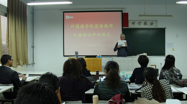 4月11日 下午,我院专业教师口语培训正式开始,英语、日语专业的培训分别在B3-207教室和院办公室进行,英语外教John、日语外教金成文夫及学院30多名英语、日语专业教师参加了培训。