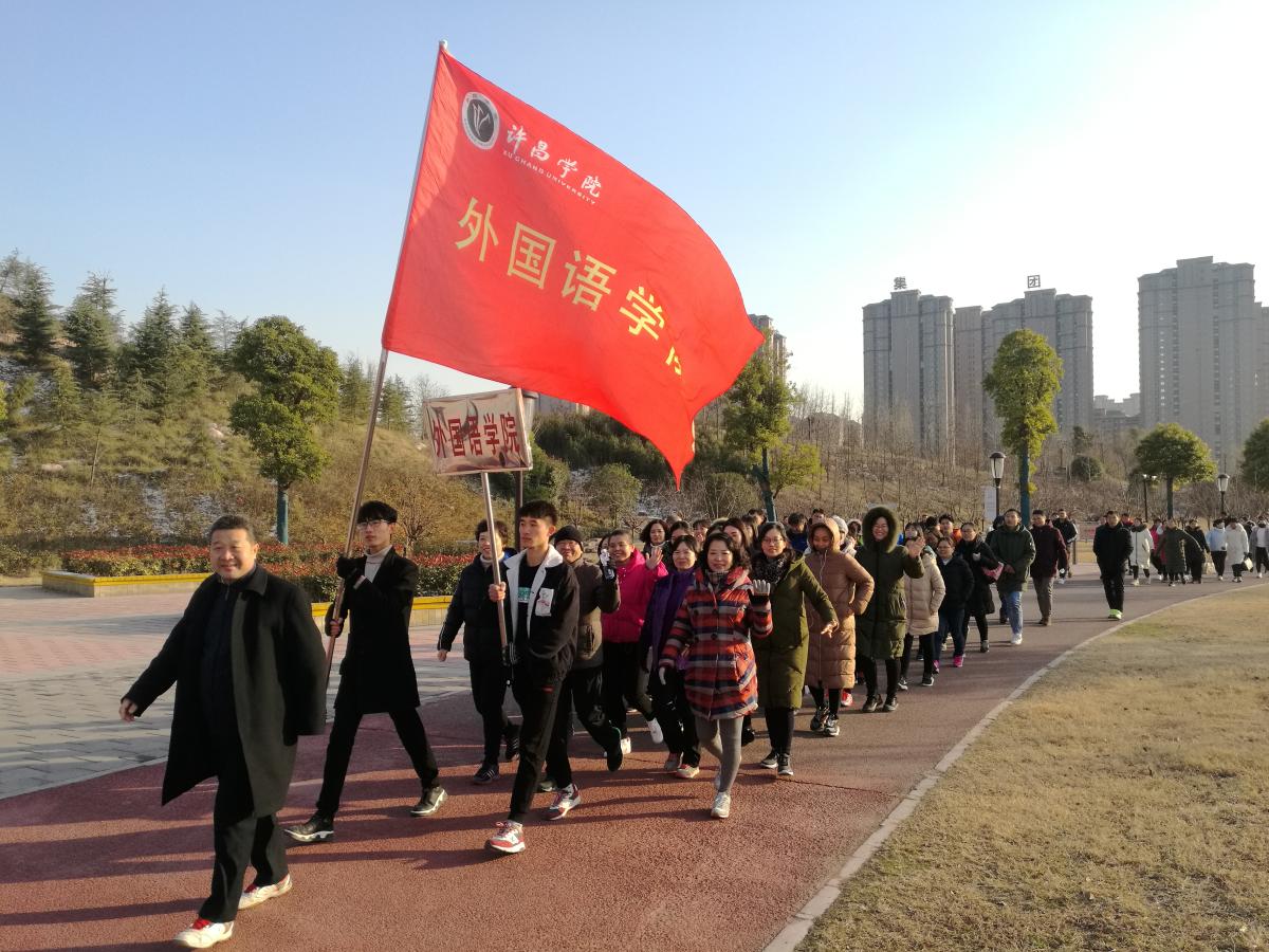 为丰富广大教职工的业余生活,激发教职工参与全民健身运动的积极性,12月28日下午,许昌学院首届“迎新年”教职工健步走活动在鹿鸣湖公园举行,本次活动由校工会主办、体育学院协办,主题为“强身健体、快乐生活、建功许院”。我院党总支书记、工会主席王国志带领班子成员及50余名教职工参加本次活动。