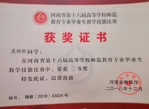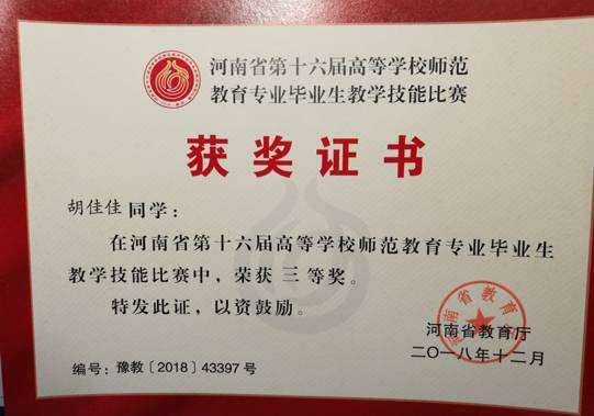 我院学生在河南省第十六届高校师范教育专业毕业生技能大赛中获奖