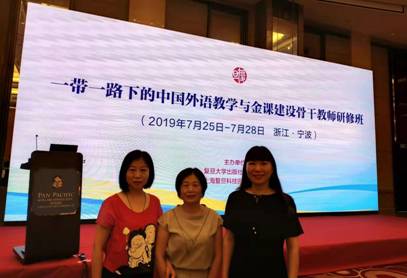2019年7月25至28日,我院教师李丽娜、刘丽丽和李蕾应邀参加了一带一路下的中国外语教学与金课建设骨干教师研修班。研修班由复旦大学出版社携手同济大学沈骑教授及团队在宁波大学举办,全国各地多所本科高校300多名大学的专家、学者及大学英语教师参加了本次会议。