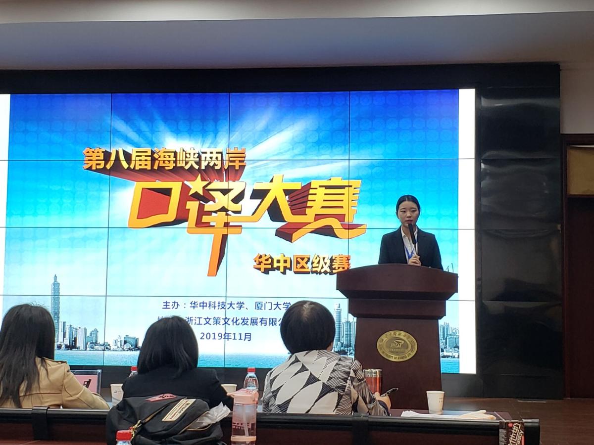 2019年11月10日,第八届海峡两岸口译大赛华中区级赛在华中科技大学举行。我院翻译专业17级的白荟同学在指导老师马文慧的带领下参赛。在经过精彩激烈的角逐之后,最终在大赛中取得三等奖的可喜成绩。