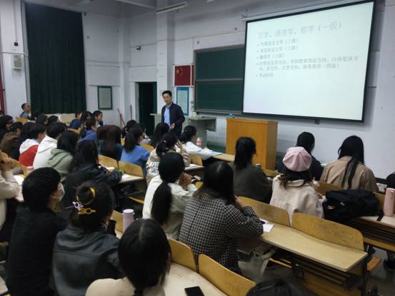 在互动交流环节,各位老师就大家在考研备研计划中遇到的各种问题做出了认真的解答,如专业课的准备、二外的学习和自己学习水平的评定等。大家积极讨论,会场气氛轻松活跃。会后,同学们纷纷表示参加此次动员会更使他们坚定了考研的信心和决心,明确了学习目标,为自己的学业深造提供了交流的平台。