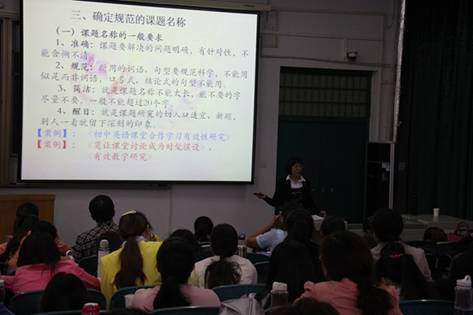 刘俊杰老师围绕中小学教师的教育教学课题研究,要求学员们树立“问题即课题,教学即研究,成果即成长”的观念,并结合范例详细讲解了课题的选择、课题立项申报书的填写、课题开题报告以及课题结题研究报告的撰写,强调了课题研究过程性材料的积累。刘老师的讲座内容充实,理论与实际结合,有利于学校和教师的双赢发展,得到了学员们和学生们的密切关注。