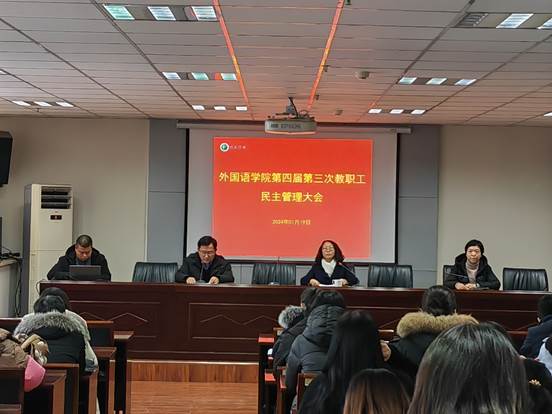 2024年1月19日上午,外国语学院分工会第四届第三次教职工民主管理大会在文科综合楼1917会议室召开。外国语学院全体教职工参加会议,会议由党委书记刘立胜主持。