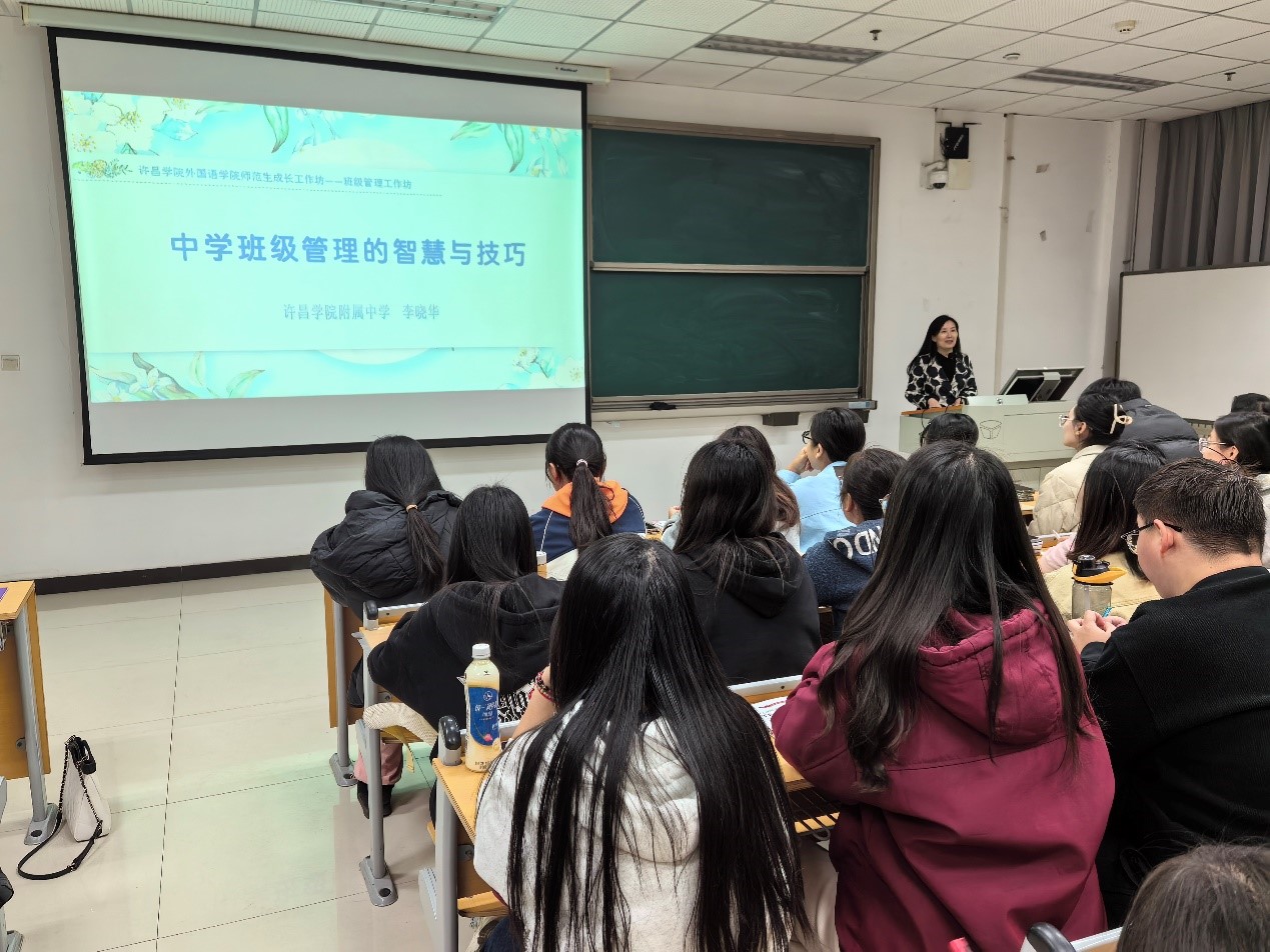 为加深师范生对中学班级管理工作的认识,提升班级管理工作技能,2024年11月6日,“班级管理”工作坊邀请许昌学院附属中学李晓华老师莅临我院,为工作坊全体成员开展“中学班级管理的智慧与技巧”专题讲座。