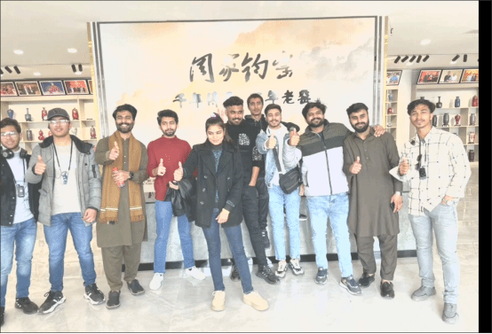 来自俄罗斯的安娜(Anna) 同学兴奋地表示:“亲手触摸泥土,感受它在指尖流动,再想象它经过烈火会变成那样美丽的艺术品,这过程太奇妙了!钧瓷的色彩像我们泰国的晚霞一样变幻无穷。” 当参观至模拟开窑场景时,窑门开启瞬间釉色晶莹的成品呈现眼前,引发了阵阵赞叹。来自巴基斯坦的马利克(Malik)感慨道:“‘钧瓷无双’果然名不虚传!每一件都是独一无二的艺术。这种追求自然天成的美学,和‘一带一路’倡导的和谐包容理念非常契合。这次参观让我对中国文化的理解更深了,这是连接我们两国人民心灵的美丽桥梁。”