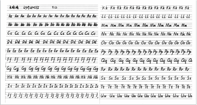 依据《许昌学院外国语学院师范生成长工作坊建设方案》要求,为提升英语师范生教学基本功,增强其未来在英语教学岗位的竞争力,“师范技能训练工作坊”针对24级英语专业学生开展了为期8周的钢笔英文书法强化训练。