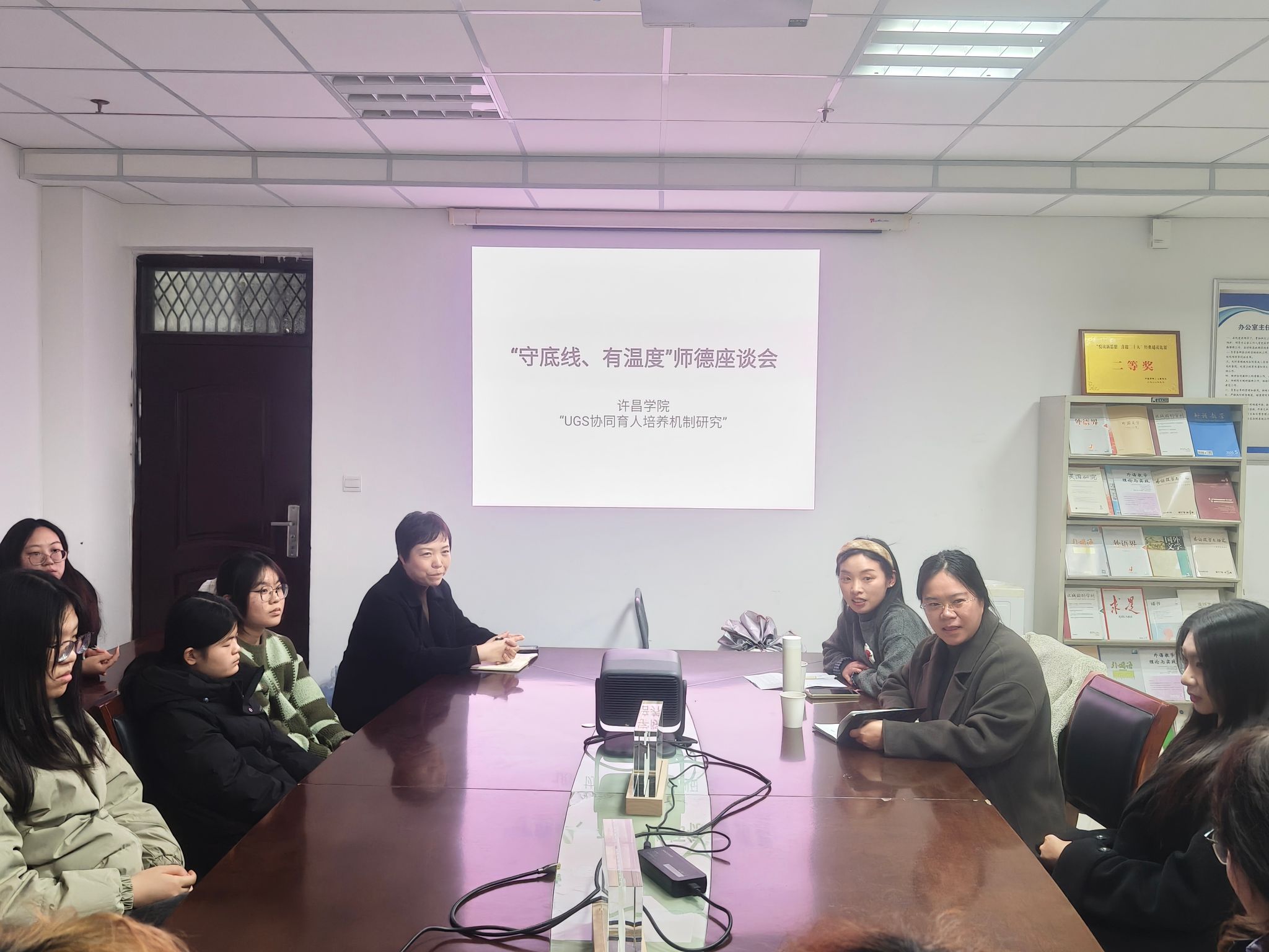 11 月 24 日下午,我院邀请建安区五女店镇中学王静雯老师和教学成果突出的鄢陵县陈化店中学吕云博老师为我院英语师范生开展师德讲座,2023 级、2024 级部分师范生代表教师教育课程教师参加了讲座,讲座由学院副院长曾尔奇主持。本次活动是河南省师范教育质量提升行动计划示范性项目——“许昌学院与许昌市教育局共建乡村专业发展共同体”的系列培训活动之一。