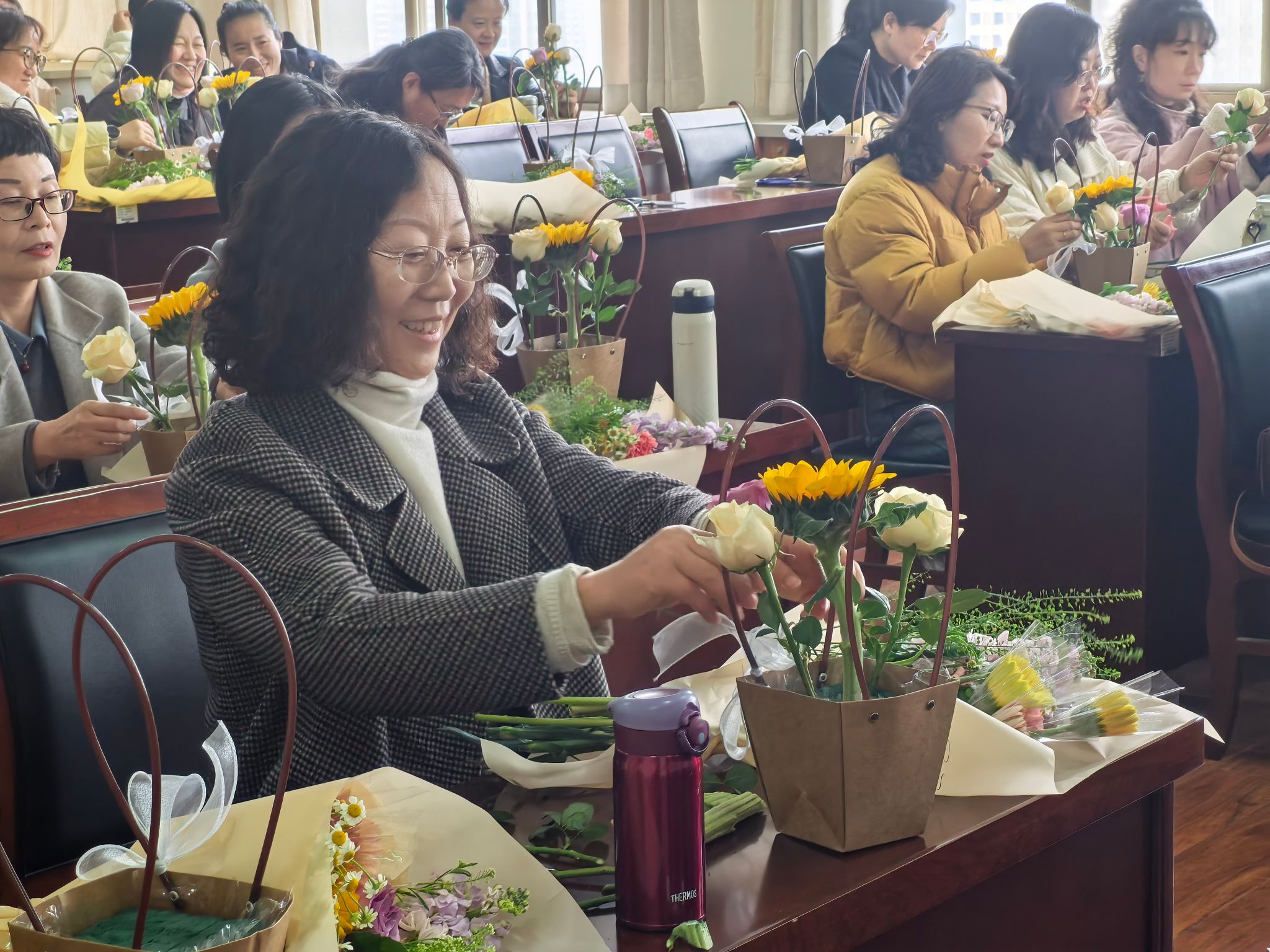 “平时工作比较忙,很少有机会能静下心来感受艺术之美。这次活动不仅让我们学到了插花知识,陶冶了情操,更感受到了学校对女教职工的关怀与温暖。”参与活动的李老师捧着自己的作品,脸上洋溢着幸福的笑容。