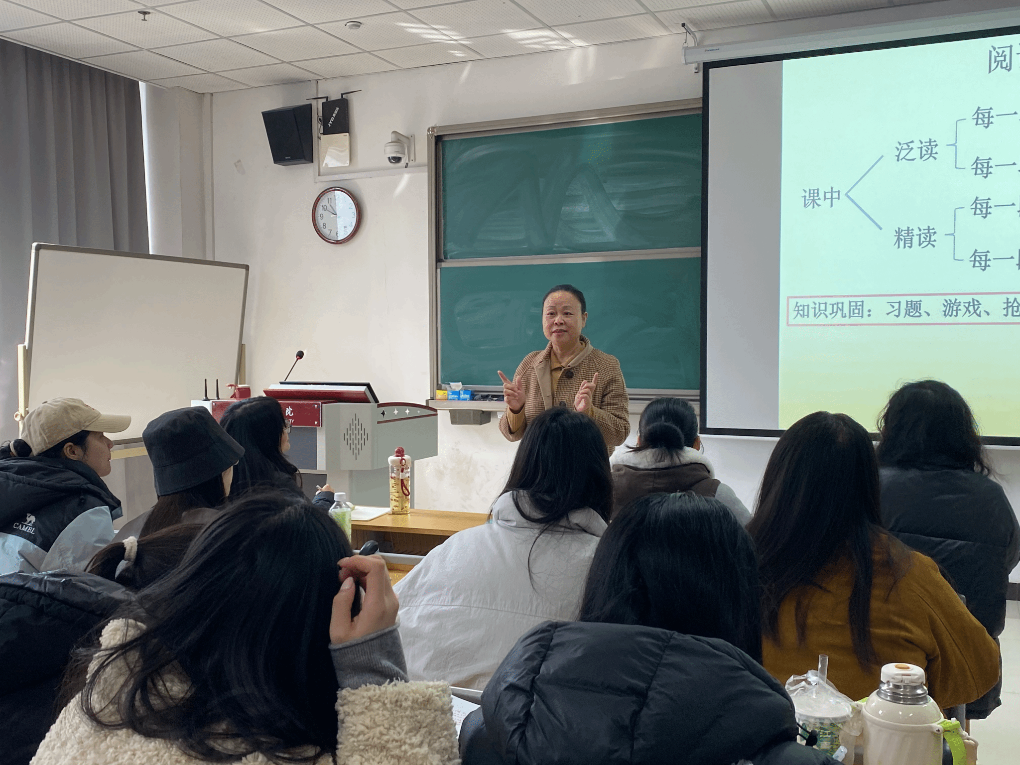 讲座过程中,许玉辉老师语言生动、案例详实,既有理论高度,又贴近中学教学实际。通过此次讲座,不仅帮助英语专业学生对“同课异构”这一教研模式有了系统认识,更对如何将新课标理念转化为具体的课堂实践有了更为清晰的思路。(摄影:张艳玲)