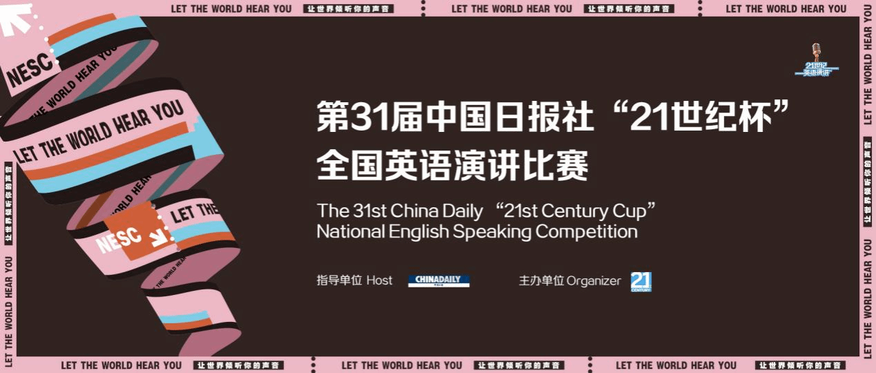 中国日报社“21世纪杯”全国英语演讲比赛由中国日报社于1996年创办,以“让世界倾听你的声音”为口号,比赛以习近平新时代中国特色社会主义思想为指导,全面贯彻落实党的二十大精神,比赛致力于引导广大青年坚定文化自信,成长为中华优秀传统文化的传承者和传播者,在对外交流中讲好中国故事、传播好中国声音,向世界展示一个可信、可爱、可敬的中国形象。该赛事于2023年被教育部中国高等教育学会列入《全国普通高校大学生竞赛分析报告》竞赛目录,是教育部官方认可的国家级A类学科竞赛。