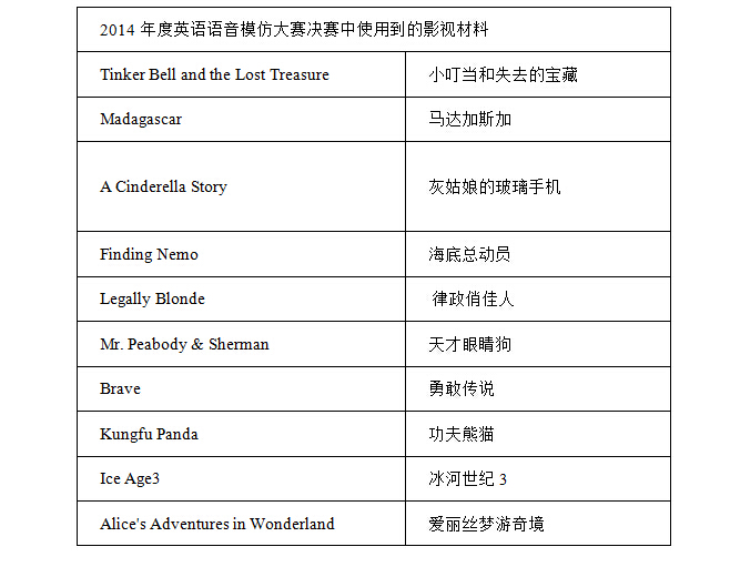 注:参加比赛的团队选择的影视材料与去年决赛时使用到的内容不能雷同。