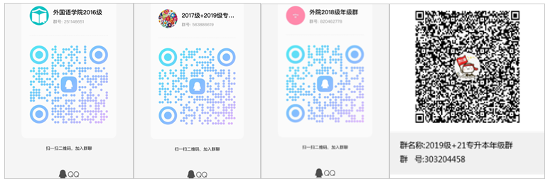 2.在校生以年级为单位统计并填报报名信息表,截止日期前将报名信息表和报名费交至文科综合楼E1912。已毕业离校学生请扫描通知后附的相应年级二维码进QQ群,按群里的通知要求进行报名。