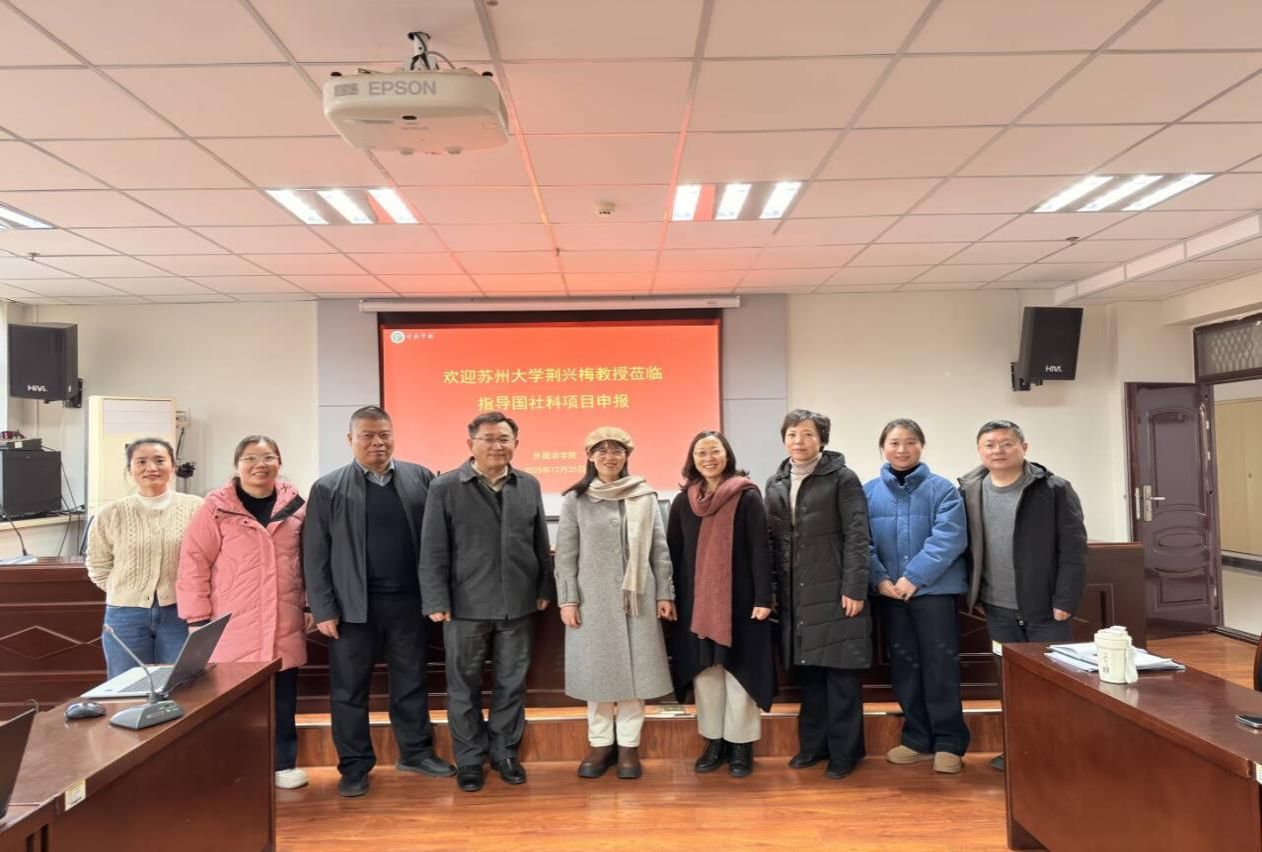 为提升我院科研骨干国家社科基金项目申报质量,助力科研创新能力再提升,12月25日下午,我院特邀苏州大学荆兴梅教授在1917会议室开展国家社科项目申报专题指导讲座。讲座由院长刘彩霞主持,我院科研骨干齐聚现场,学术氛围浓厚。