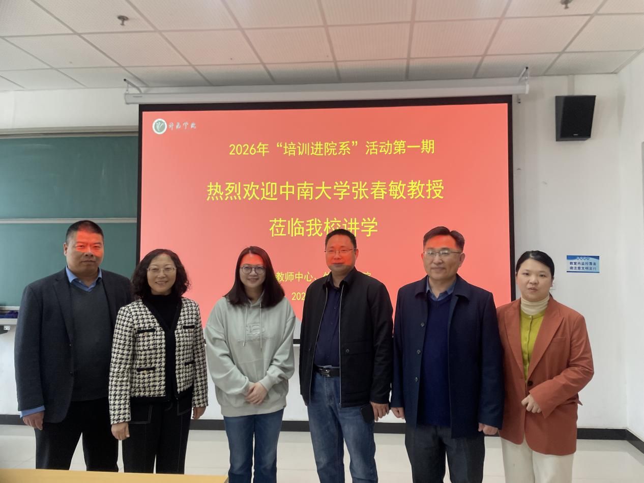 2026年3月27日下午,我校在文综楼406举行第一期“培训进院系”活动,特邀中南大学张春敏教授作专题报告。教师中心主任刘其涛、外国语学院党委书记刘立胜、外国语学院全体教师和其他院系教师共100余人参与此次活动。活动由外国语学院院长刘彩霞主持。