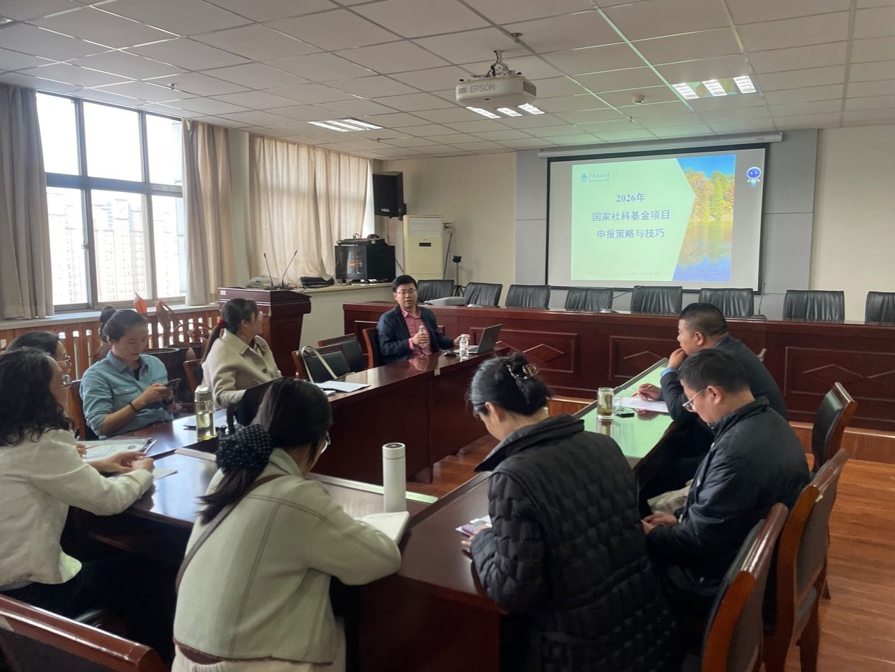 为进一步提升我院国家社科基金项目申报质量,精准把握申报要点与技巧,3月27日下午,我院特邀华南理工大学外国语学院武建国教授,于E-1917会议室开展题为“2026年国家社科基金项目申报策略与技巧”的专题指导讲座。我院及其他相关院系的科研骨干参会,讲座由院长刘彩霞教授主持。