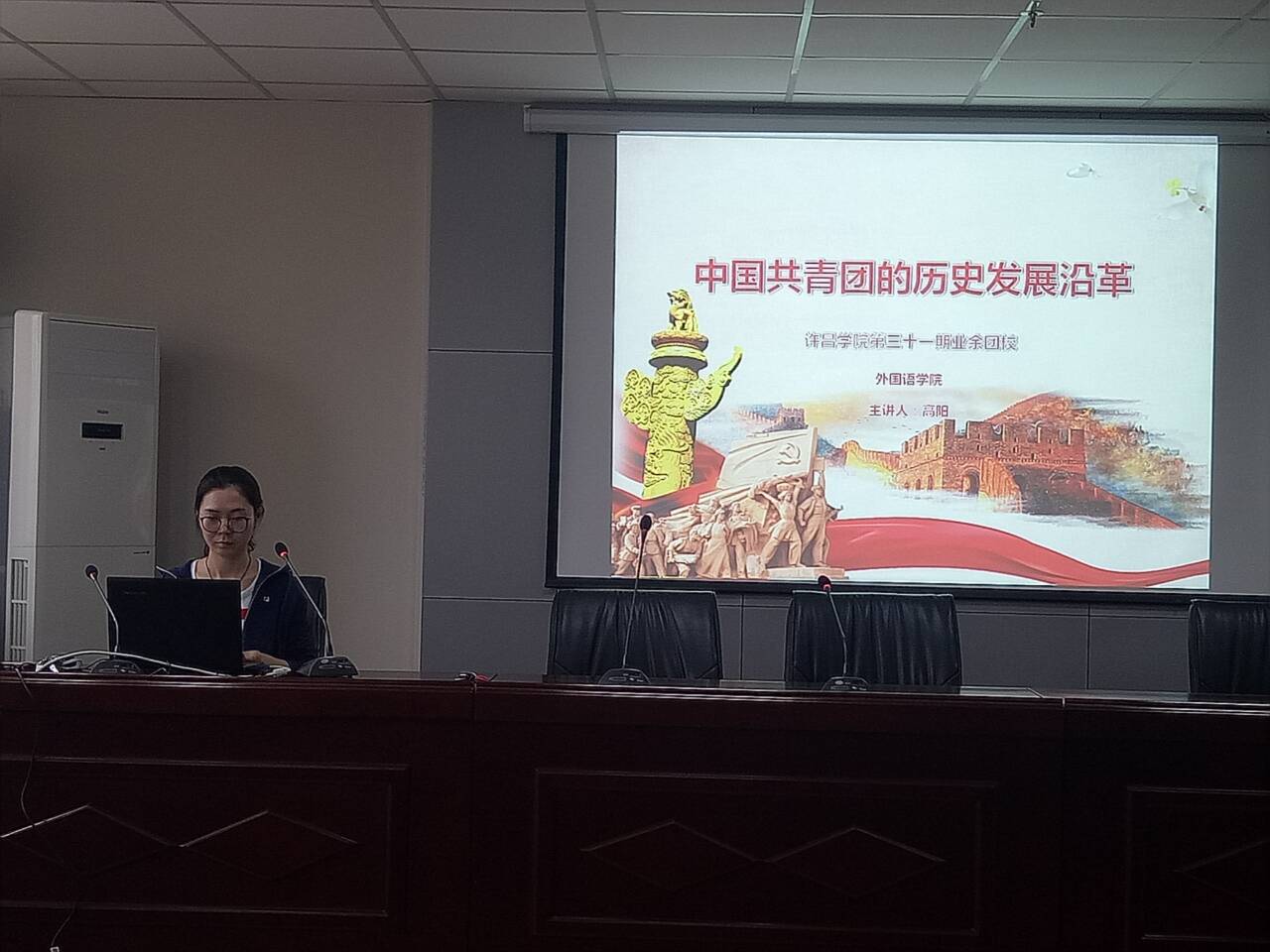 4月11日,高阳老师以“中国共青团的历史发展沿革”为主题,为学员们讲授党的发展历程。高老师讲述中华民族的复兴之路,详细介绍1919年至1949年期间中国共产党的发展历程、从1949年新中国成立到全面建设小康社会的发展历程。并激励学员们定下远大目标,早日成为一名合格的党员,为实现中华民族的伟大复兴贡献自己的一份力量。