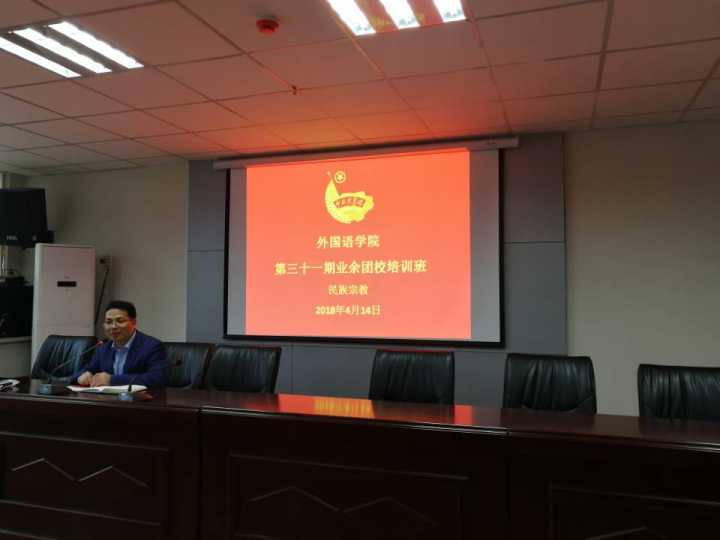 4月13日,第三十一期外国语学院业余分团校的全体成员参加了以“民族宗教”为题的分团校团课,陈化宇老师为本次团课的主讲人。陈老师指出,我国对宗教活动坚持“独立、自主、自办”的原则,强调了邪教的危害以及如何区分邪教,引导团员青年尊重各民族的风俗习惯,树立正确的民族宗教观。