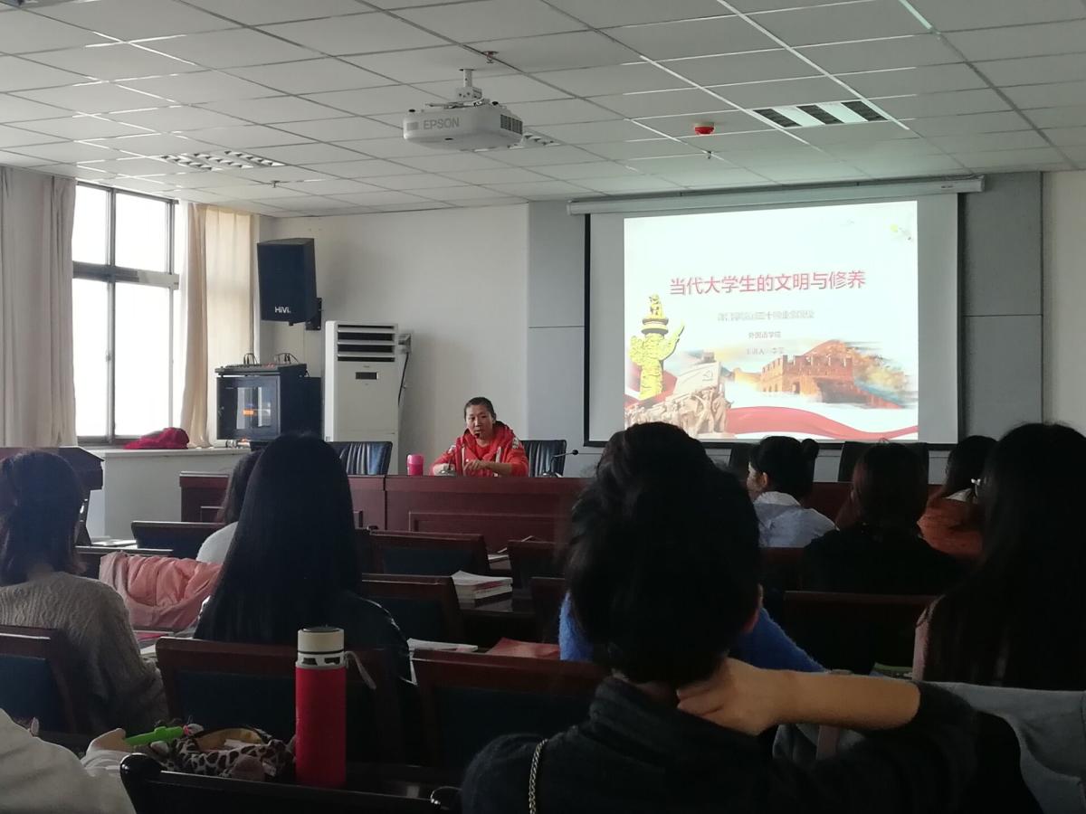 10月27号下午,在文综楼1917会议室,李莹老师为我院学生团员干部做了主题为“当代大学生的文明与修养”的专题团课,我院入党积极分子参加了本次活动。