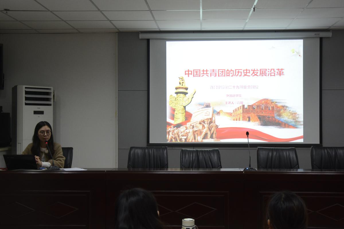 10月21日,在文综楼1917会议室,高阳老师做了“中国共青团的历史发展沿革”专题团课,就共青团的发展展开讲解,我院入党积极分子参加了此次活动。