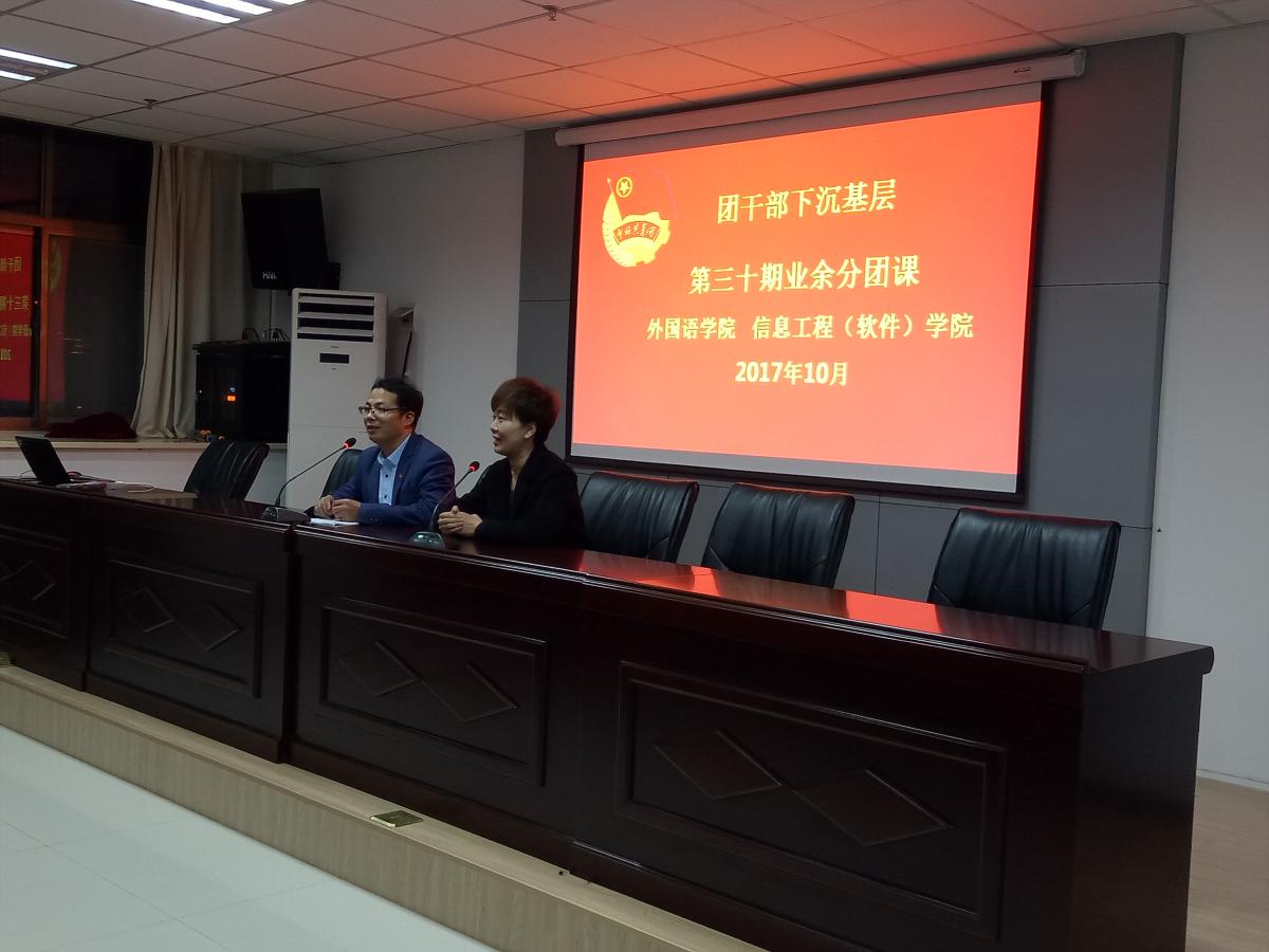 10月23日,在文综楼1917会议室,陈化宇老师和信息工程学院朱晓婷老师做了就“团干部下沉基层”活动做了专题团课,我院与信息工程学院的80多名分团校学员参加了此次活动。
