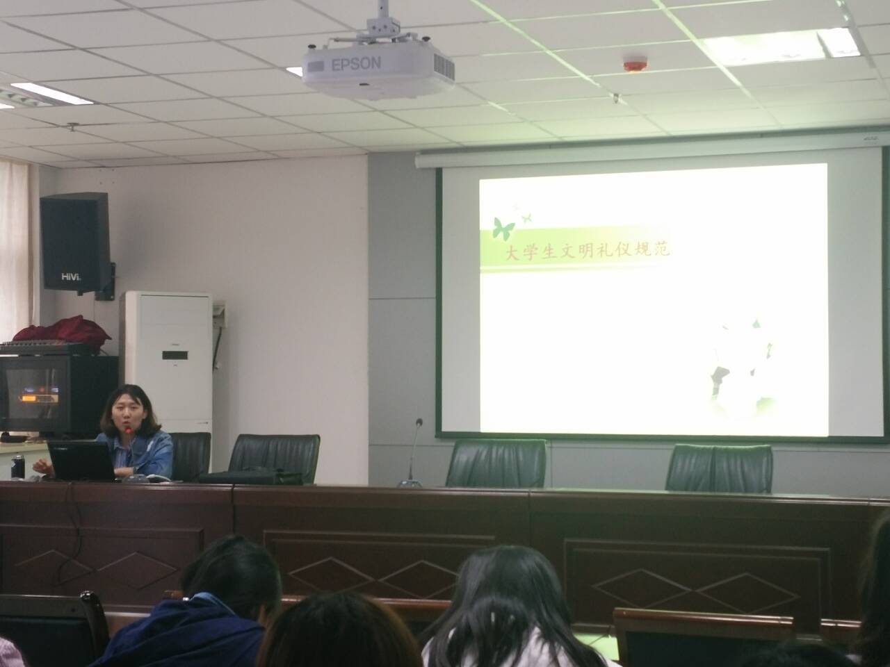 李莹老师讲述了礼仪的概述、分类,以及它与现代文明礼仪的关系,让同学们对礼仪有了新的认识。接下来从仪容礼仪、着装礼仪、仪态礼仪三个方面讲解了礼仪的重要性,并运用生动的语言和形象的比喻按从上到下的顺序为同学们描述了何为得体、正式的仪容。紧接着李莹老师又为同学们讲解了得体的仪容和服装要求,要简洁大方,修饰自然。最后讲述了公共礼仪的重要性。