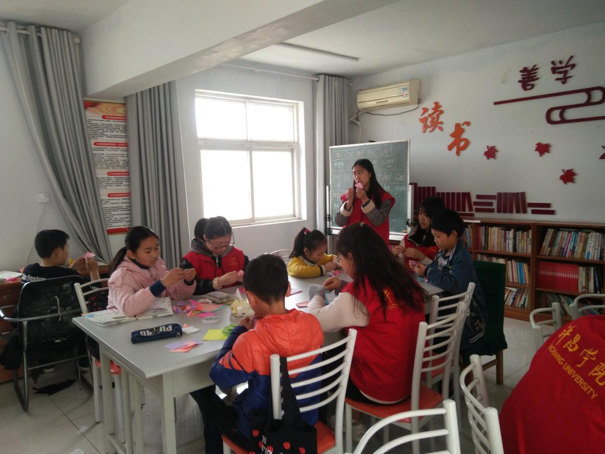 早上七点半,志愿者在国旗台下准时集合。他们认真倾听过负责人交代的注意事项后,开启了这次温暖的征程。道路两旁盛放的娇艳花朵,以及那随风飘荡的嫩绿柳枝,都为这次活动增添了不少别样的色彩。到达社区后,志愿者们受到了社区孩子们的热烈欢迎。之后,在负责人的协助下,志愿者们自行分工,分别去了小学组和初中组。在上课期间,志愿小老师们坐在孩子们的旁边,梳理知识点,对他们的功课进行认真细心的辅导。在课余的休息时间,志愿者们和孩子们愉快地做起了手工。他们一起叠纸鹤,叠花朵……孩子们一脸自豪地向志愿者展示他们的作品。一张张简单的卡片,架起了沟通的桥梁,迭起了孩子们的快乐和梦想。