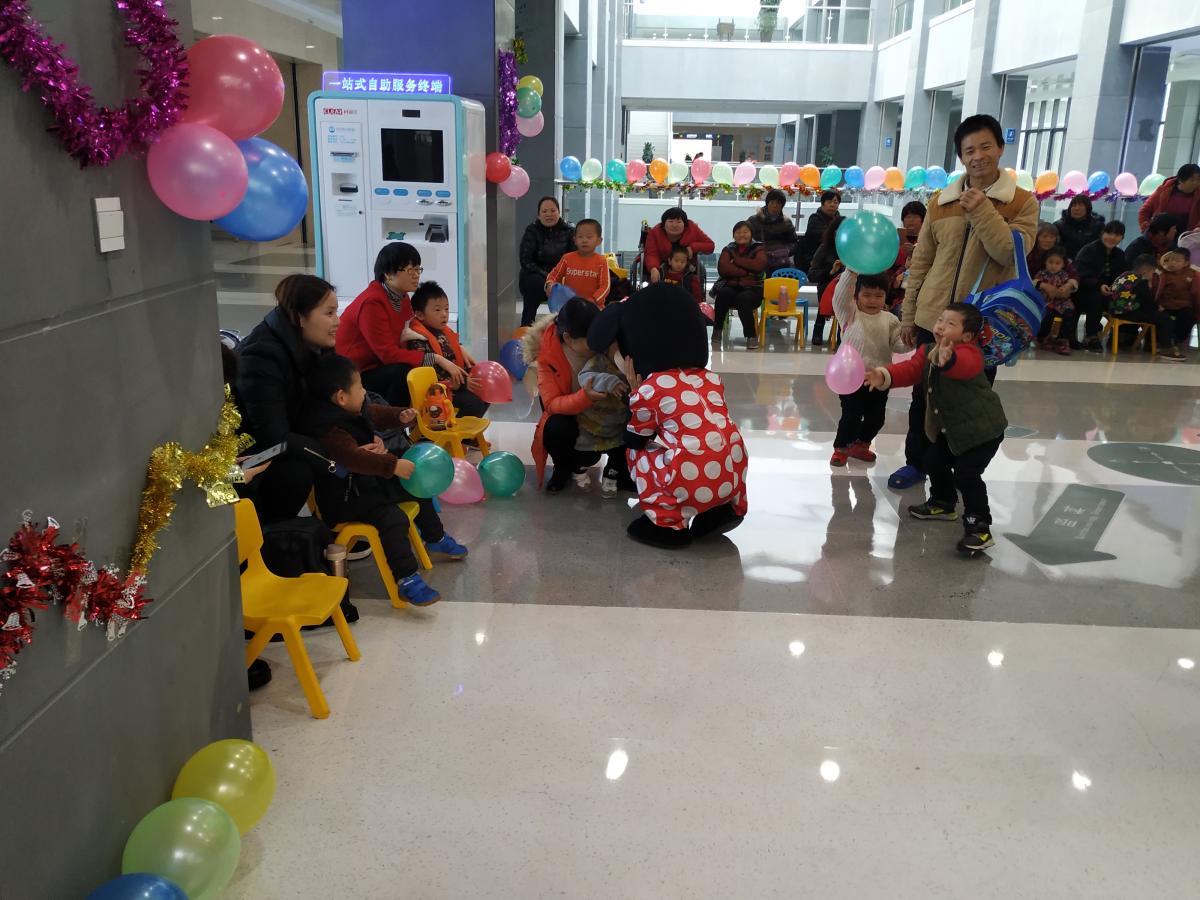 路途中寒风瑟瑟,但志愿者们不惧严寒,径直走向志愿服务目的地。经过半个小时的步行,志愿者们到达了市立医院。参加文艺汇演的志愿者们和医院文艺汇演的负责人对接工作后,开始布置场地。志愿者们分工明确,工作井条有序。男生们负责搬凳子贴横幅,女生们负责吹气球,贴彩带。不一会儿,一个充满蓬勃向上气息的场地已经布置完好。这时,志愿者们也变成了孩子,因为这个场地对于志愿者来说是一个充满爱的地方,他们像孩子般与爱为伴,与医院的孩子们融在一起,共享这份爱。