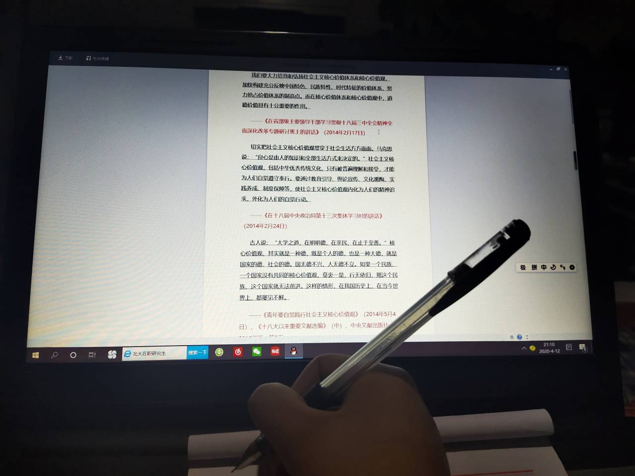 4月7日下午,陈化宇老师在线上展开为我们上团课。他以“加强社会主义核心价值体系建设”为主题,带领我们学习了二十四字核心价值观,通过引用习近平总书记的一系列讲话,着重强调了大学生思想道德教育的重要性。