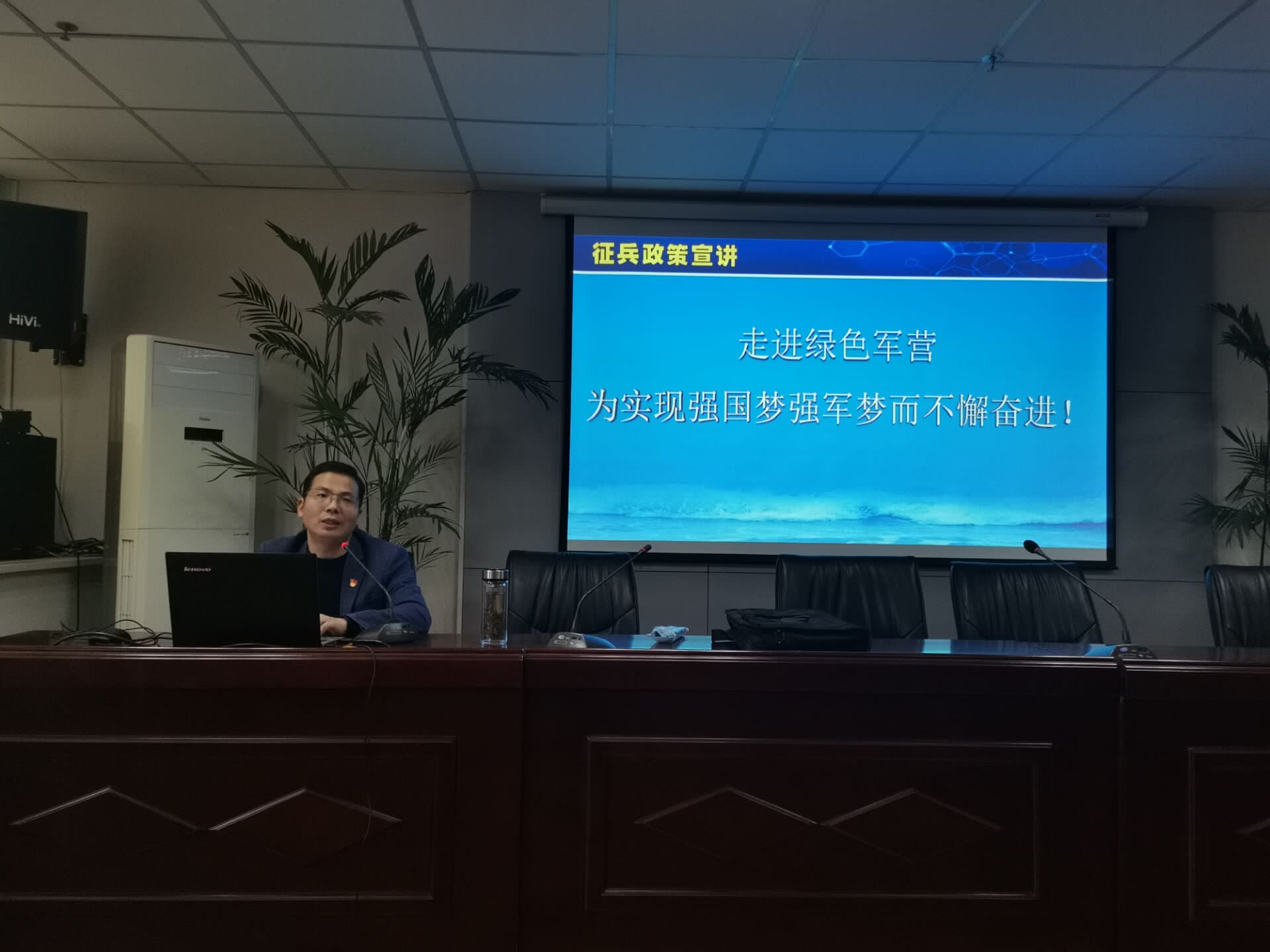 为了增强对大学生的国防教育,激发大学生应征入伍的热血激情,我院于2020年12月25日召开了以“国防动员”为主题的讲座,本次讲座主讲人为外国语学院党委副书记陈化宇老师,参与本次讲座的有18、19、20级全体男生。 在讲座中,陈化宇老师首先宣讲了我国有关对大学生征兵入伍的相关政策,让同学们深入了解到国家对于大学生积极响应国防动员,应征入伍而开放的优惠政策,引发了同学们对于应征入伍的兴趣。其次,陈化宇老师播放了关于面向大学生应征入伍的视频,并深入讲解分析了大学生积极响应国防动员的益处和意义,使同学们真切感受到大学生响应国家政策积极应征入伍的积极一面,激发了同学们响应国家国防动员号召,参军入伍的热情。最后,陈老师表示支持同学们选择应征入伍,期待同学们在军队中获得更进一步的锻炼和成长,也为保障国家国防事业稳定奉献出自己的一份力量。