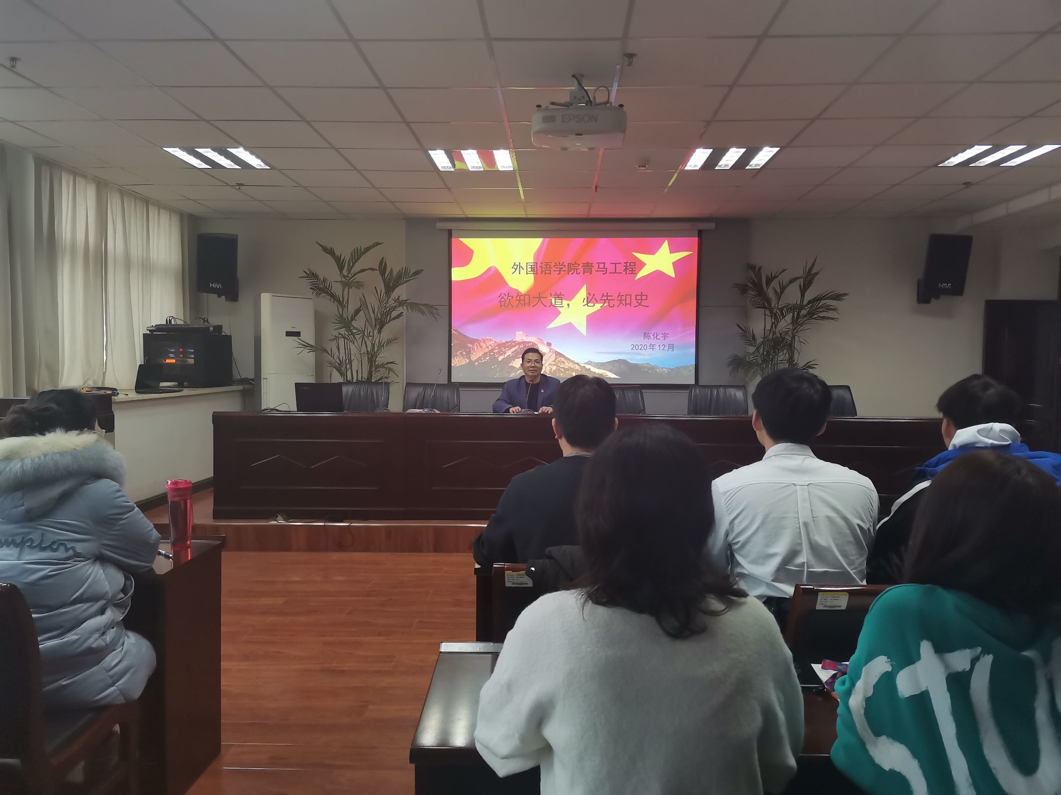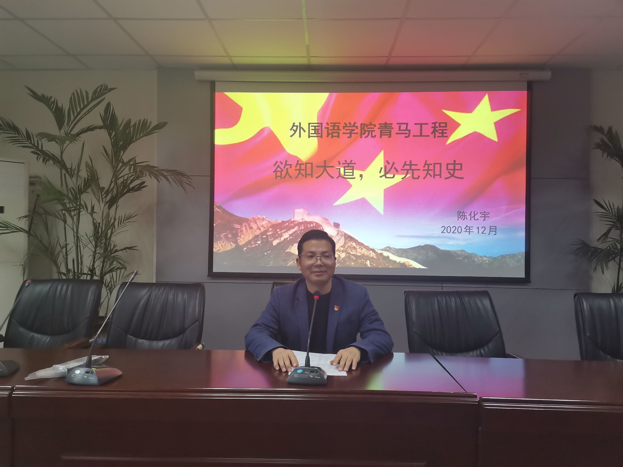 为进一步增强我校青年学子的思想政治素养和马克思主义情怀,持续推进我校“青马工程”大学生骨干培训工作,着力培养中国特色社会主义事业合格建设者和可靠接班人,外国语学院青马工程之“欲知大道,必先知史”专题会议于12月7日在文综楼1917会议室顺利召开,此次会议的主讲人为外国语学院党委副书记陈化宇老师。