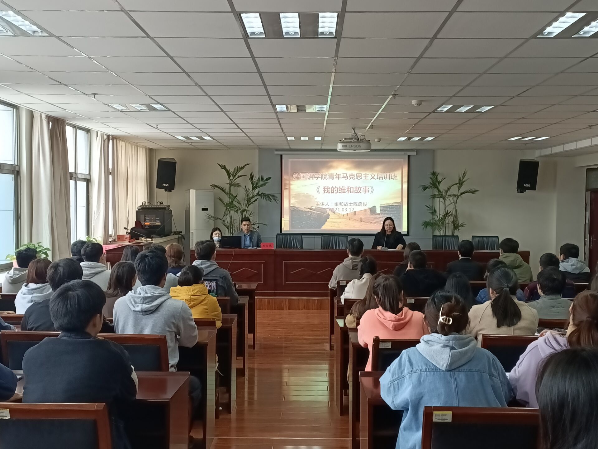 为使同学们进一步领悟新时代青年人的担当,明确青年马克思主义思想,3月12日下午三点,外国语学院于E-1917会议室开展了《我的维和故事宣讲》活动,特邀维和归来战士陈启俊作为主讲人来讲述自己的维和故事。