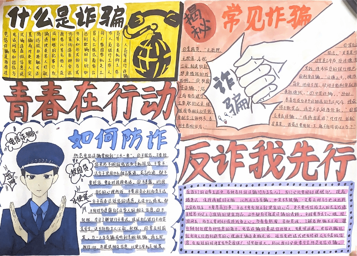 系列活动主要包括防范电信网络诈骗主题征文比赛、“青春在行动,反诈我先行”主题海报手抄报设计大赛、防范电信网络诈骗微视频大赛等。在活动中,同学们用生动的案例、妙趣横生的防范电信诈骗小视频,让大家熟知诈骗分子的常用手段、辨别诈骗的实用技巧、防范诈骗的方式方法,起到了很好警示的作用。(摄影:郭思怡)