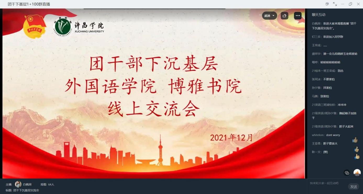 外国语学院与博雅书院团干部下沉基层团支部进行线上工作交流